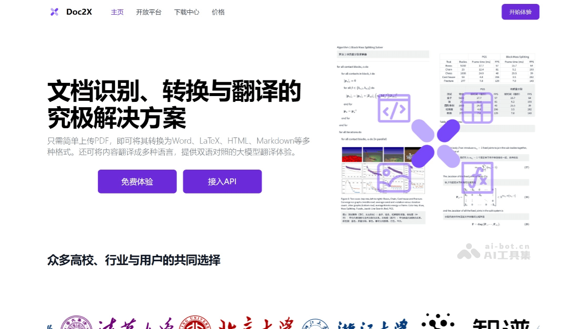 • 开发者可以通过访问官方网站使用API服务,集成Doc2X的功能到自己的应用中。